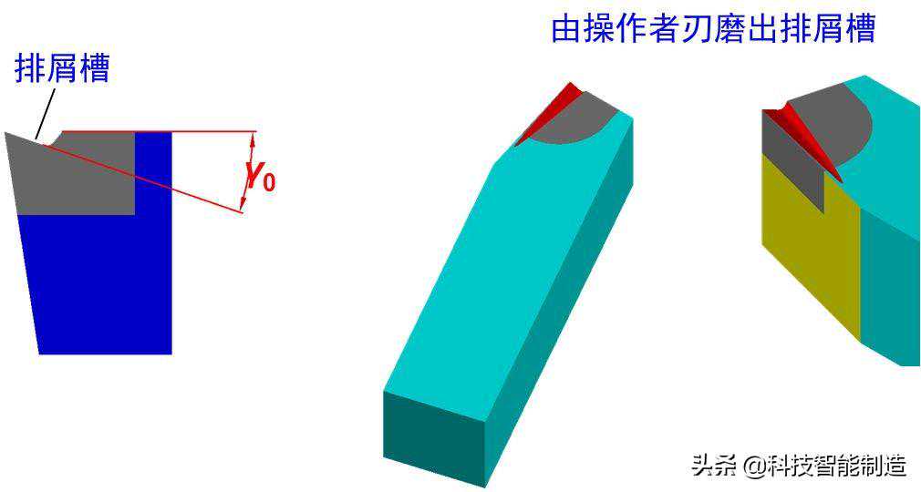 通常,制作车刀时并没有预先制出前角(γ0),而是靠在车刀上刃磨出排屑槽来获得前角的。排屑槽也叫断屑槽,它的作用大了去了折断切屑,不产生缠绕;控制切屑的流出方向,保持已加工表面的精度;降低切削抗力,延长刀具寿命。
