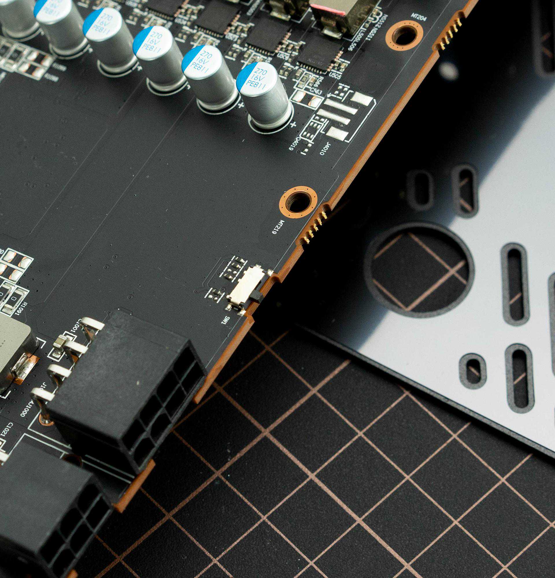 显卡背板带斜纹开孔设计,配合XFXLOGO,看上去颜值不输玩RGB灯的那群骚货。