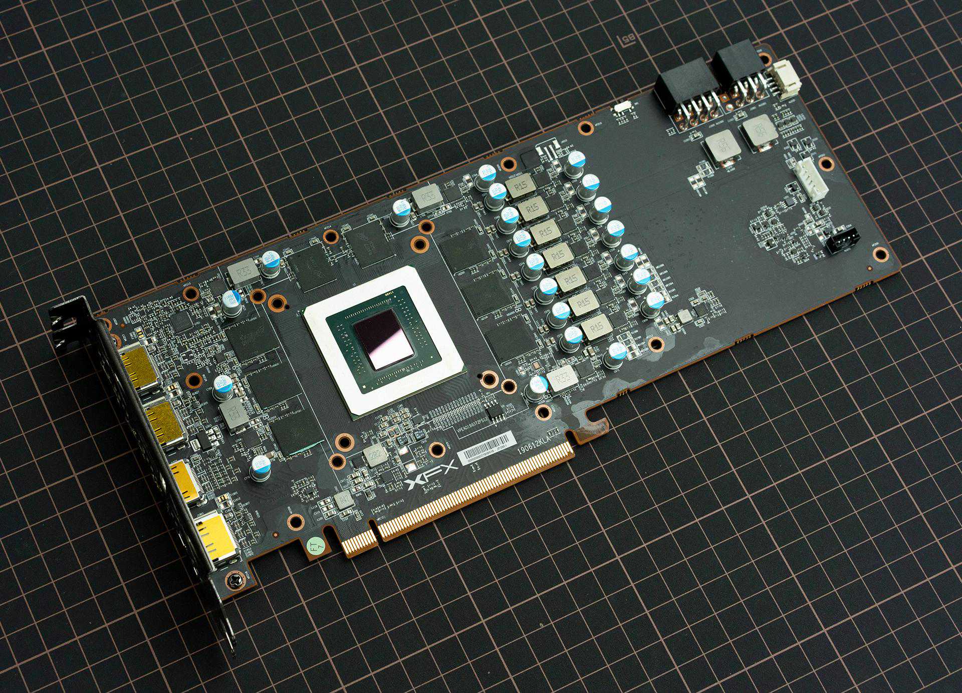 PCB上印有讯景XFXLOGO,证明该卡采用的是讯景自家PCB。
