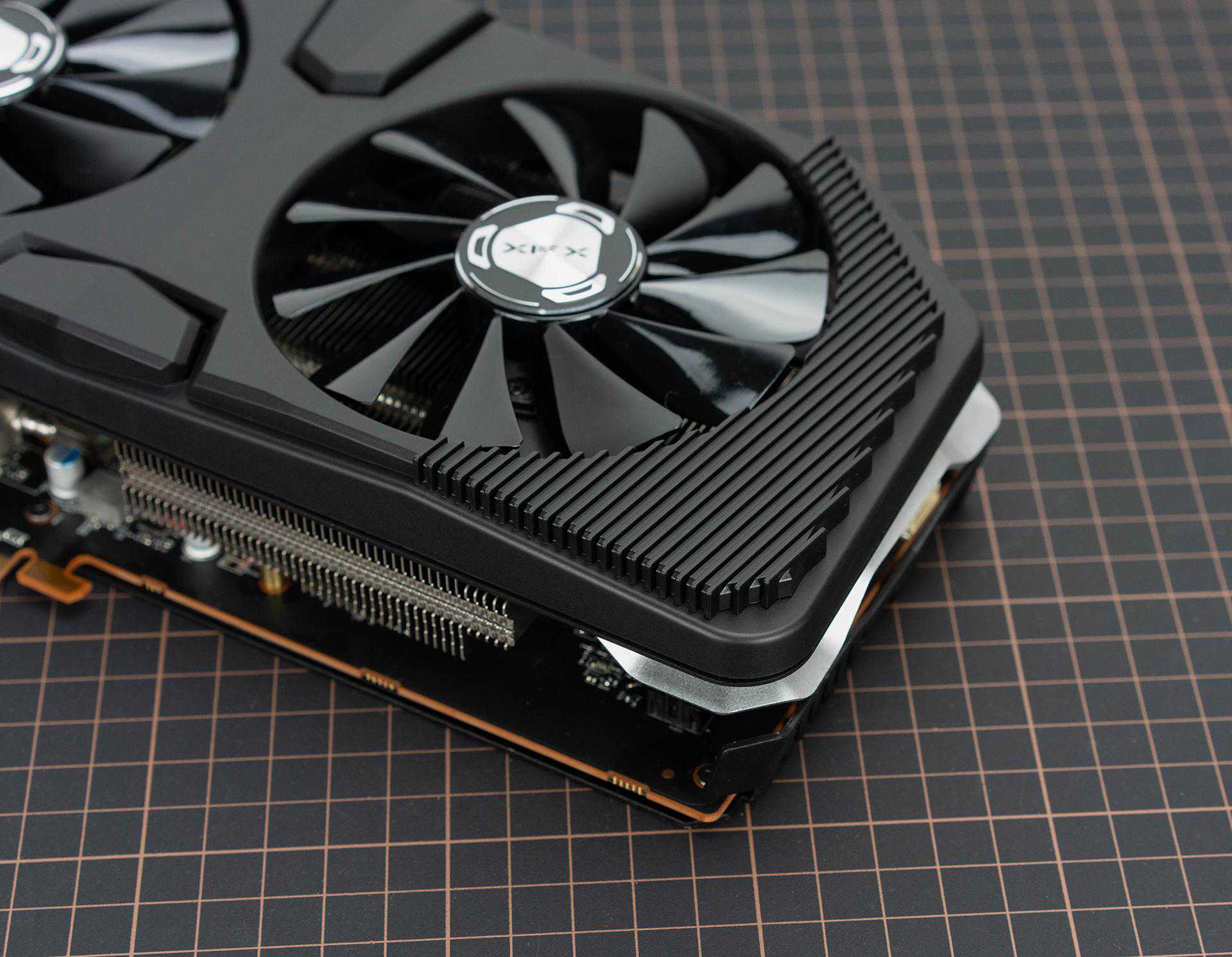 显卡背板延伸至显卡肩部,看上去风格相当的粗犷,显卡的中部带有XFX信仰灯。