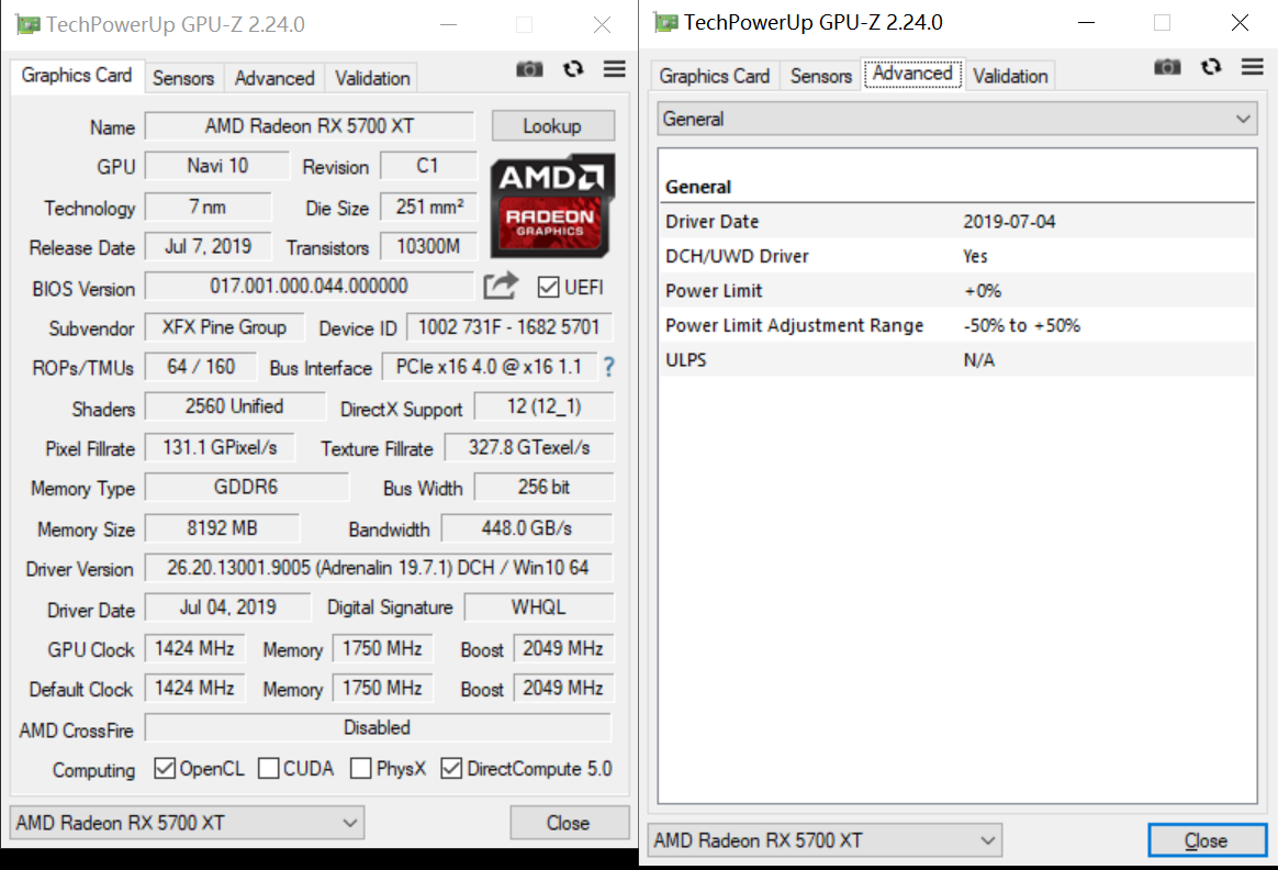 显卡:AMDRX5700XT公版/讯景RX5700XT8GB黑狼版