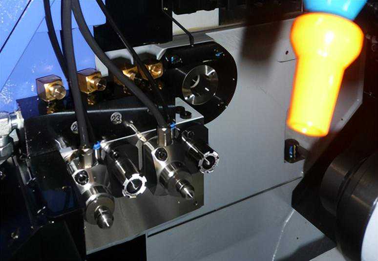 图为斯大走心机SB-20R加装两个高频铣动力头的应用案例,斯大走心机常规刀座孔22mm,用高频铣MSIY-20F是否合适呢?答案是可以。这款主轴外径20mm,可以搭配一个20转22mm的变径套,就能加装在22mm的斯大走心机刀座孔上了。