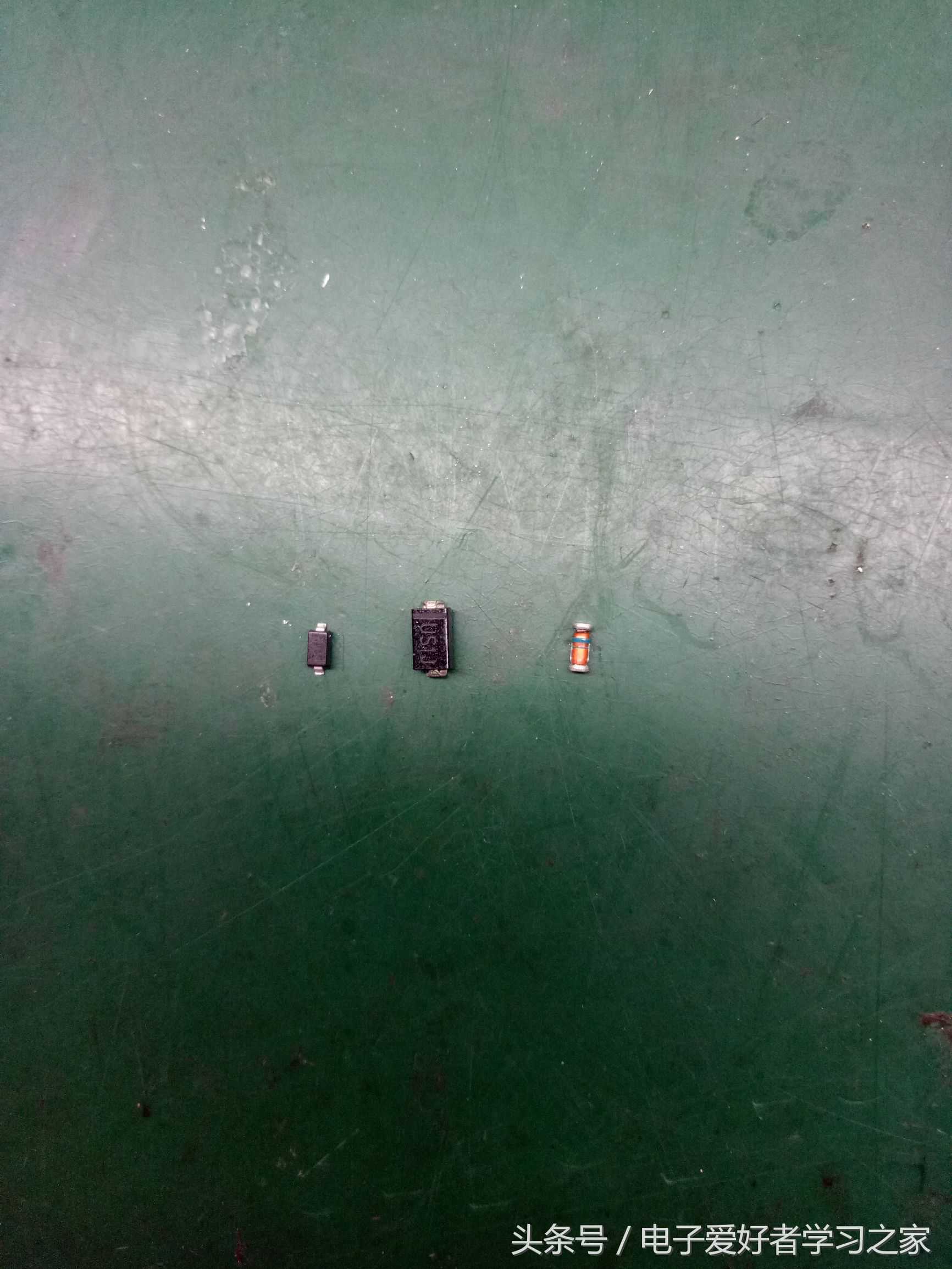 板子上有两个贴片二极管的封装无法确定,分别是1N4001和4148的。元件上周我已经出去买回来了,我是第一次用贴片二极管,第一次见的时候居然分不清到底哪个是4001,哪个是4148,不得不问卖片子的那家,老板说,大的标着M1的是4001,小的标着W2的是4148。
