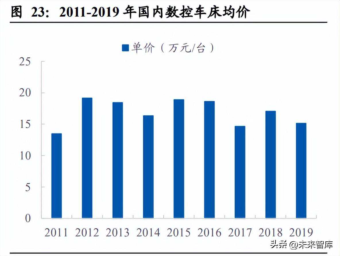 国内车床行业竞争相对激烈,高端数控车床进口替代持续推进。“十三五”末期与“十二五”末期相比,国内数控车床单台均价整体小幅下降,平均价格在16-17万左右的水平。在当前结构调整、产品升级大背景下,国产数控车床均价小幅下降也体现了我国车床行业竞争仍然相对激烈。而进口数控车床在数量、金额均下降的背景下,均价仍呈现增长趋势,表明我国数控车床在转型升级和结构调整上取得了不错的进步,正在逐渐替代进口高端数控车床。