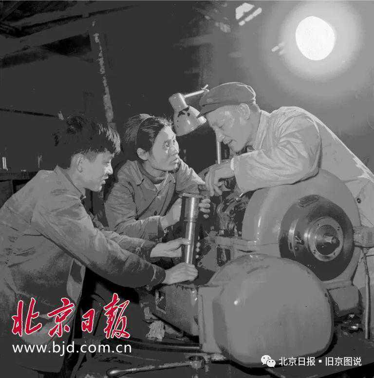1959年,第一机床厂重型车间师傅带徒弟。王可信摄