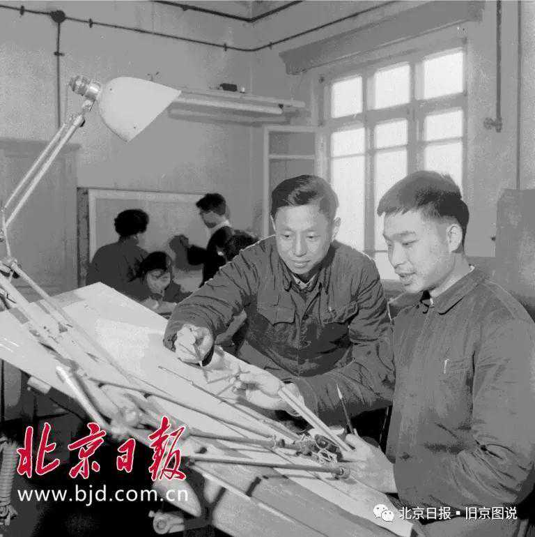 1961年,北京第一机床厂锻冶科技术员施孝永和张葭华正在设计机床工艺装备零件。冯文冈摄