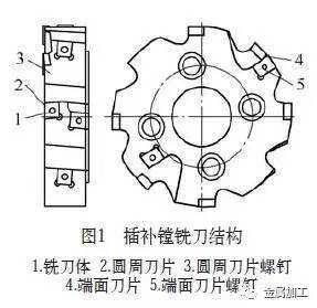 (1)插补镗铣刀的结构特点。插补镗铣刀为英格索尔立装结构,如图1所示,铣刀由铣刀体1、圆周刀片2、圆周刀片螺钉3、端面刀片4及端面刀片螺钉5等配件组成,圆周刀片及端面刀片镶在铣刀体的刀槽中,刀片中间带有螺钉孔,分别通过螺钉与刀体联接,靠切削力夹紧,定位可靠,刀片转位、更换方便。