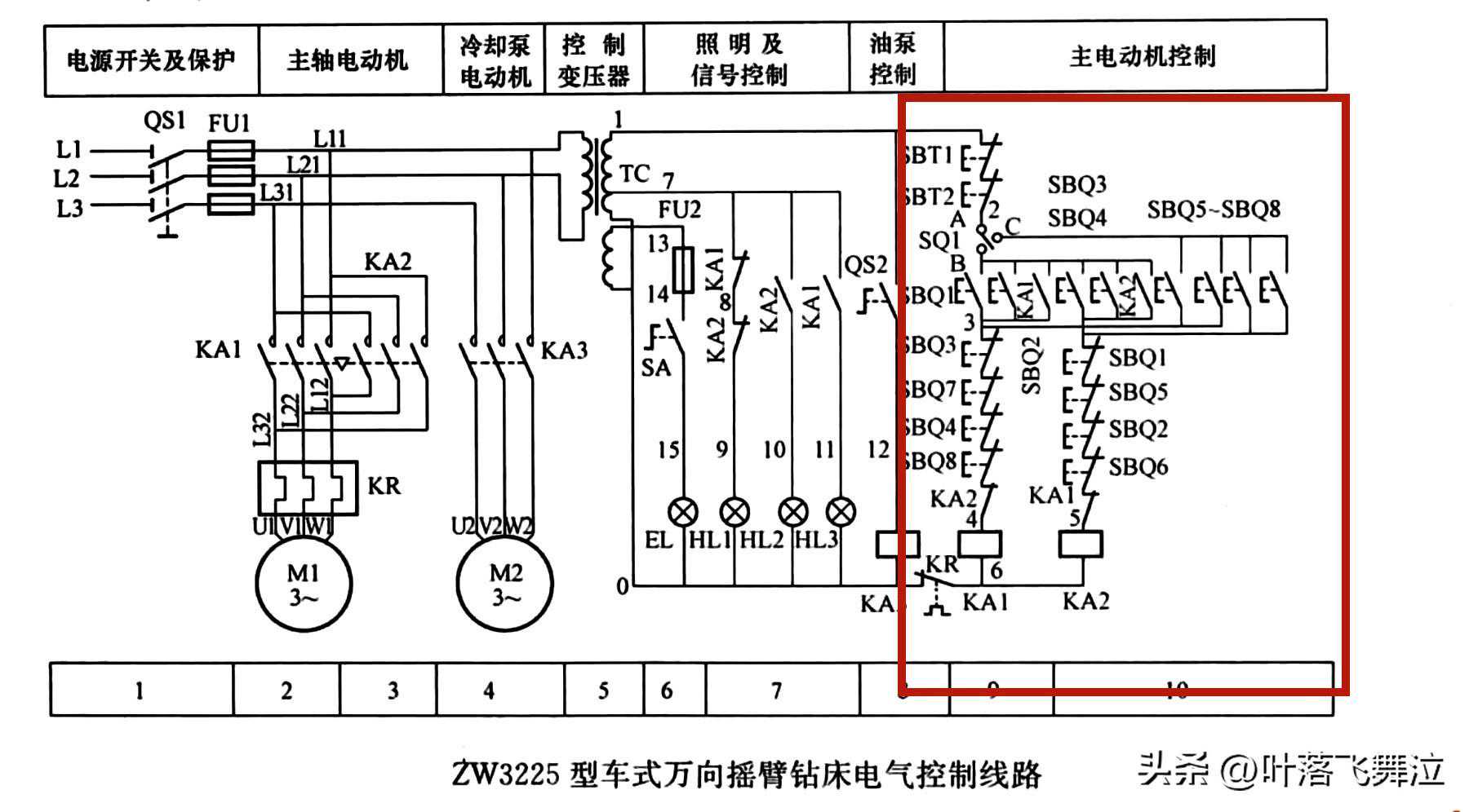 ZW3225型车式万向摇臂钻床电路运行原理讲解