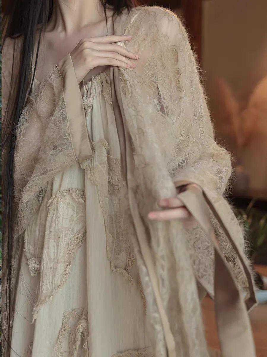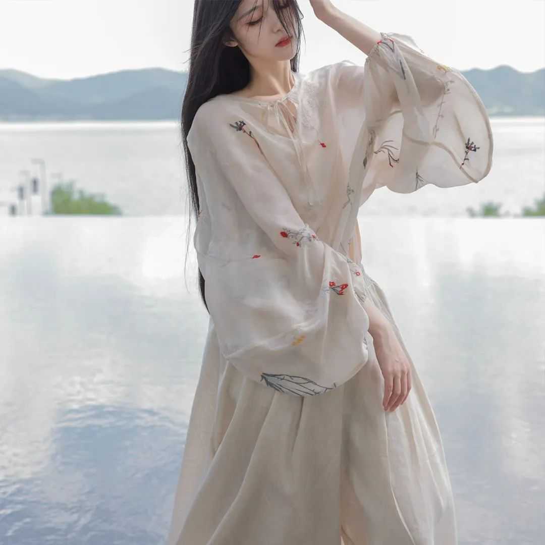 刺绣灯笼袖米杏色