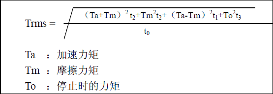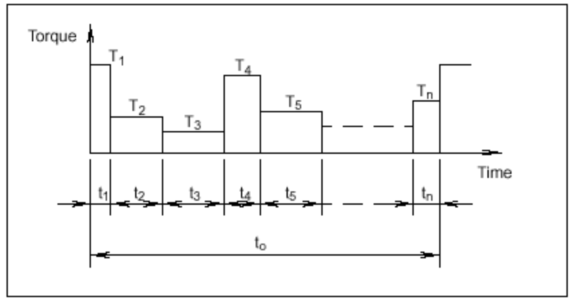 根据力矩-时间图可以得到一个运行周期的加于电机上力矩的均方根值。对该值进行核算,确保要小于或等于电机的额定力矩(条件3)