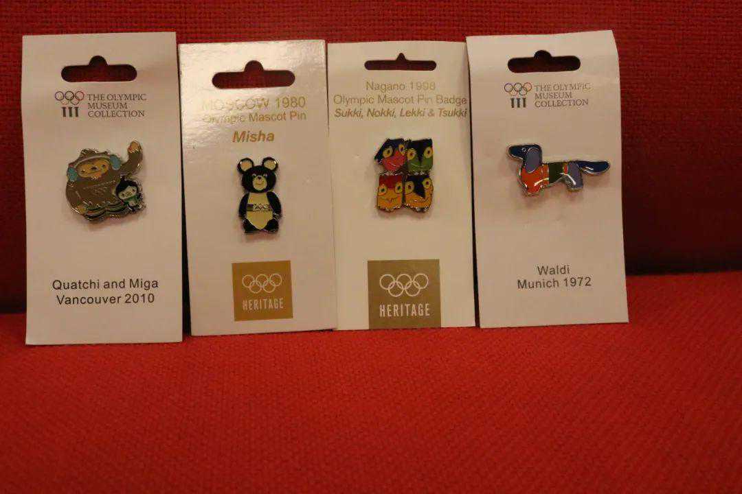 长野1998官方奥运吉祥物胸针徽章:日本人选择四只小猫头鹰做为吉祥物,这是首次以四只动物做吉祥物的奥运会。四只吉祥物取名为Snowlets,每只都还有不同的名字,分别取名为:Sukki,Nokki,Lekki,Tsukki,代表火、风、地和水四个不同的森林生命组成要素,而四个名字的英文字头加起来正好拼成Snowlet。