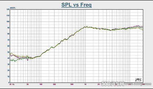 MT650C的宽频特性,不仅仅表现在套装组合的从50Hz到25kHz的宽频响应;还在于中低音与高音喇叭本身的宽频响应。从实测的MT650C的各喇叭单体曲线可以看到,中低音从60Hz可以到10kHz,高音喇叭的下限可用频率可达1KHz,而且整个可用频宽都没有明显峰谷而非线性失真低,因此声音非常耐听。