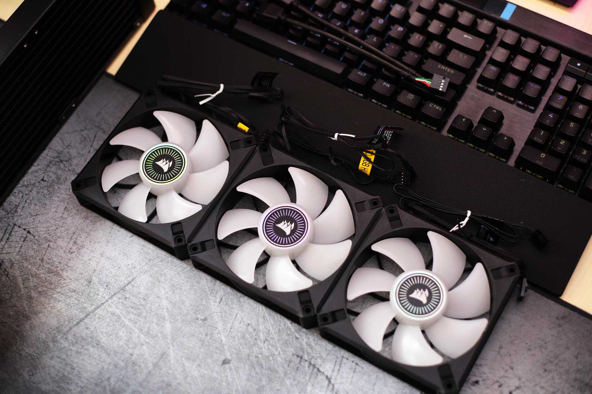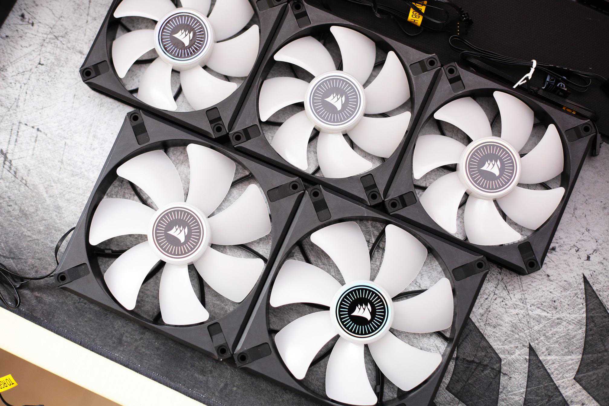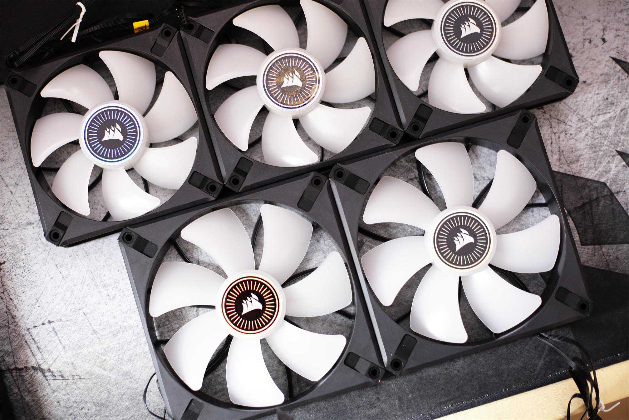 散热风扇带有RGB灯光,海盗船在设备灯光素质,一直没有让人失望。