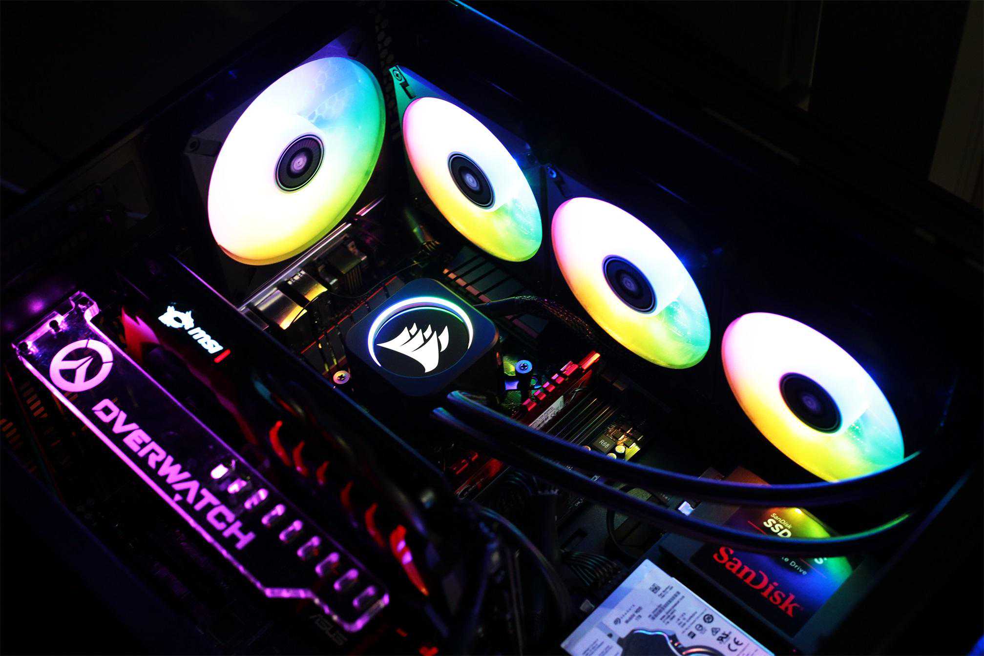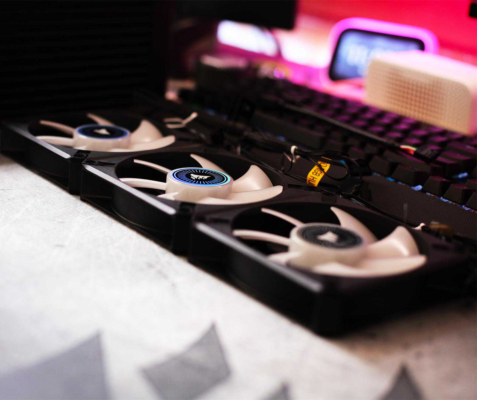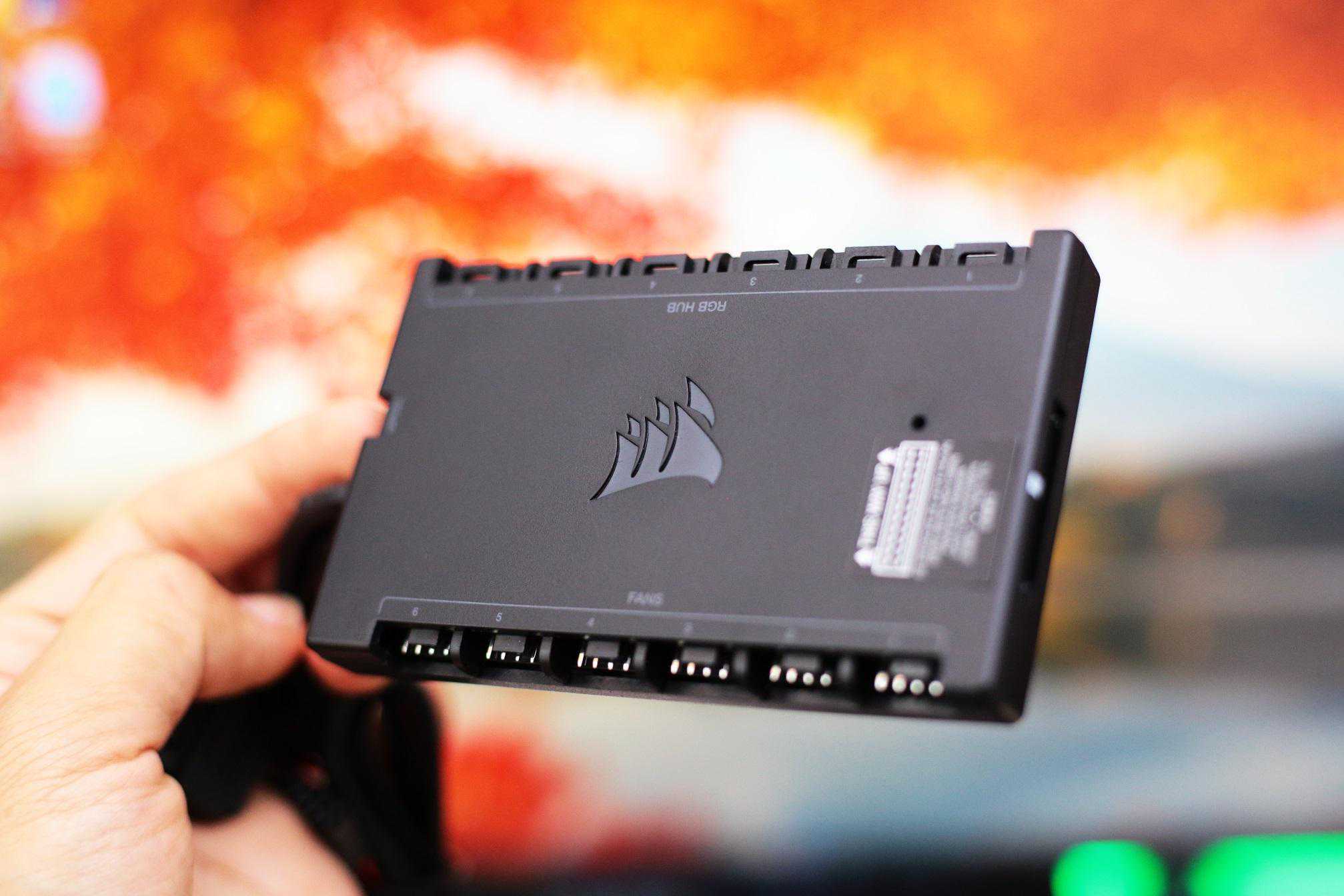 散热风扇带有RGB灯光,海盗船在设备灯光素质,一直没有让人失望。