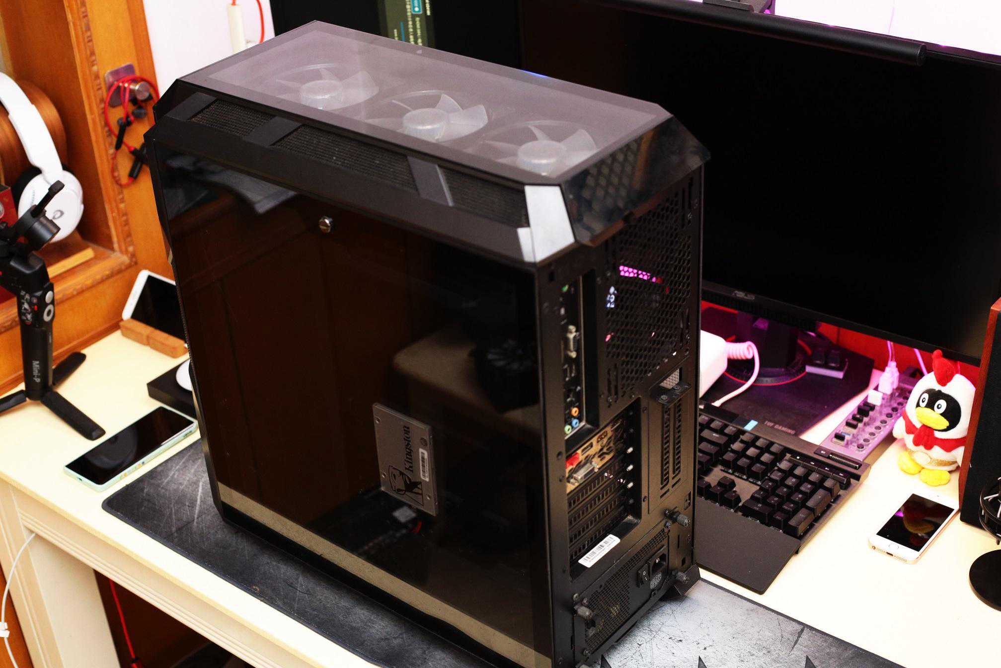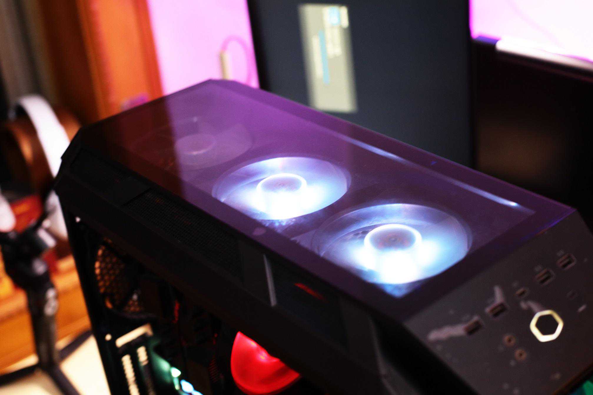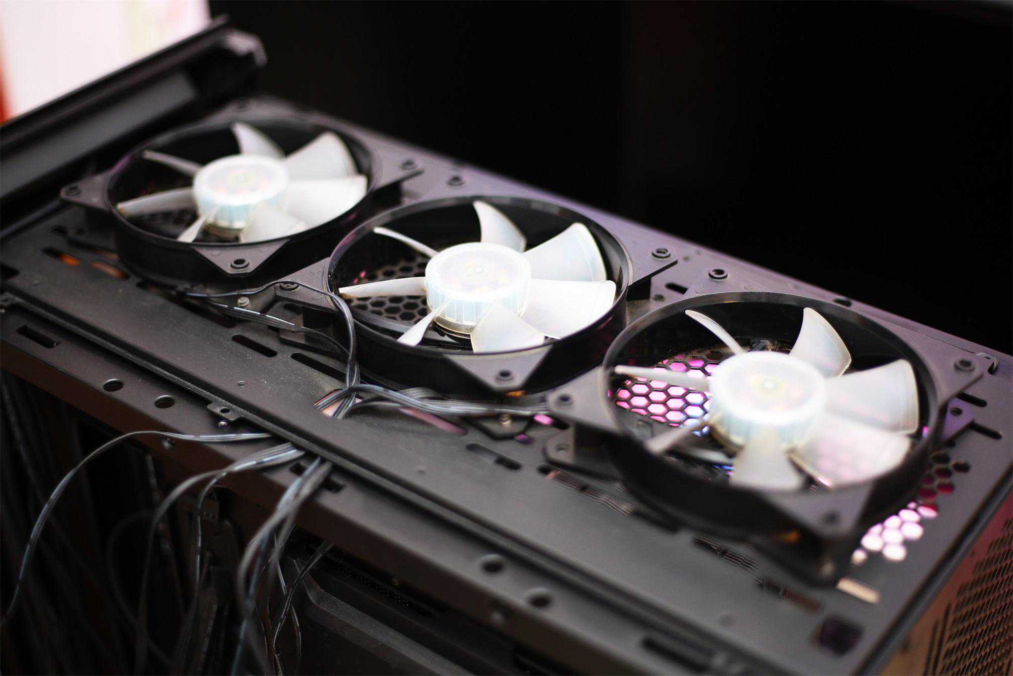 主机前侧放置两枚20cmARGB风扇,尺寸还是挺唬人的。