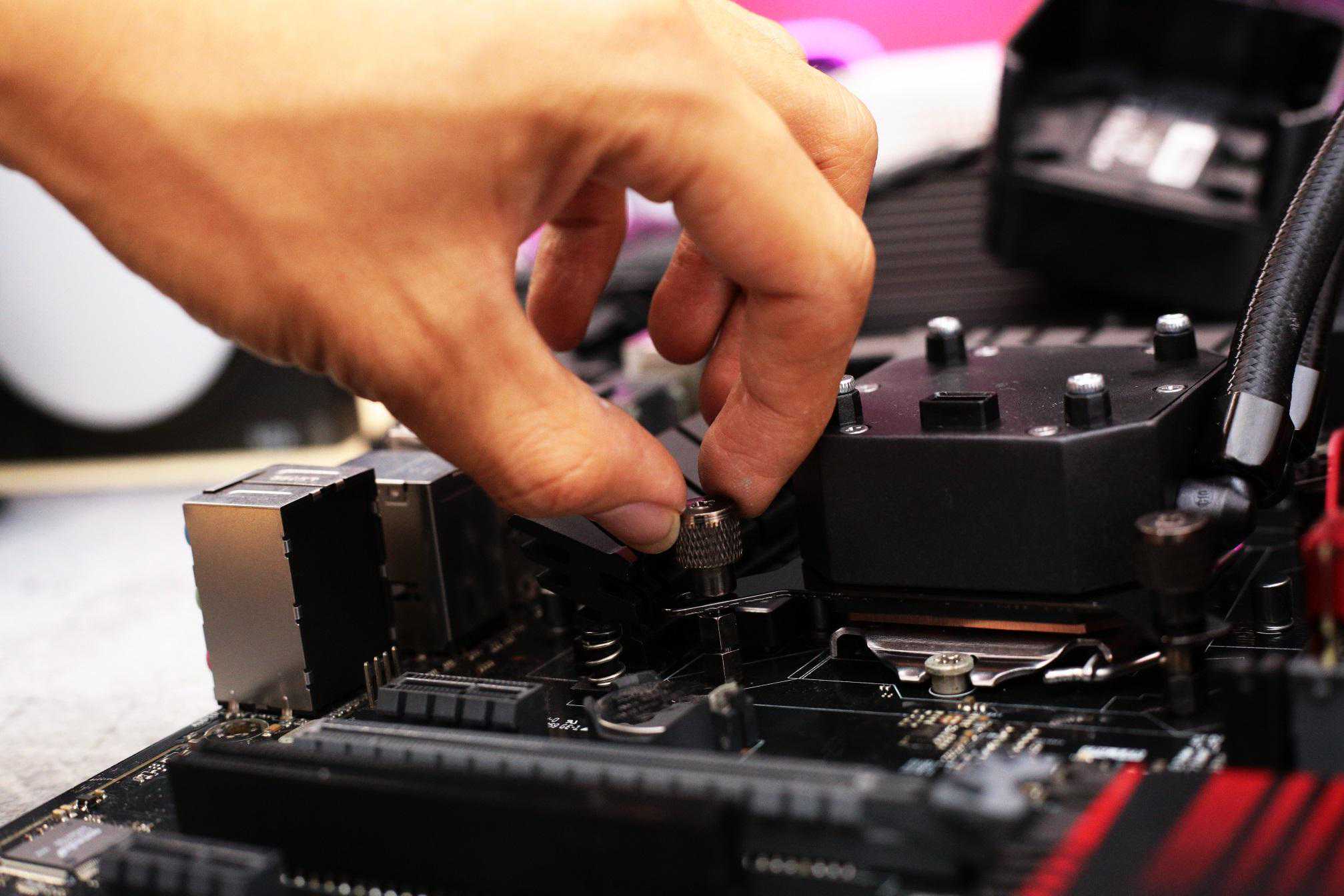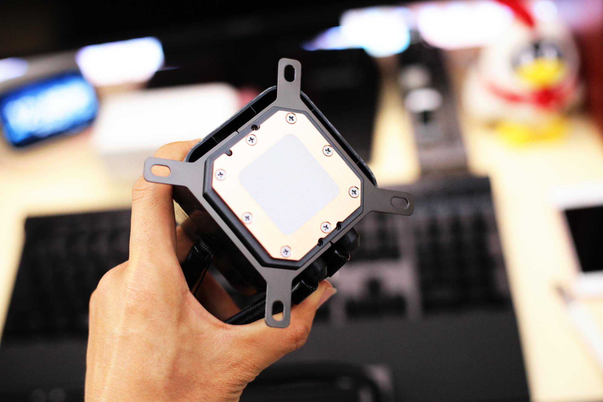 第三步,装上四枚手拧螺丝,风扇水冷头的安装就完成啦,