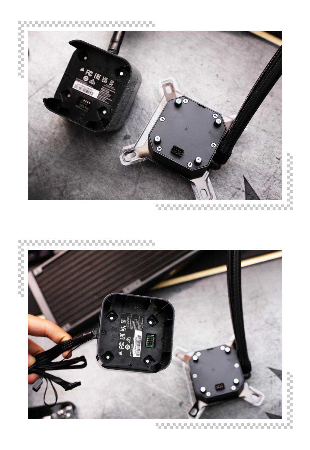 可以看到水冷头可以分为上下两部分,如果你此前是海盗船H150iEC系列散热器用户,只需要购买精英版LCD套件模块就能升级成为这款海盗船H150iEliteLCD。