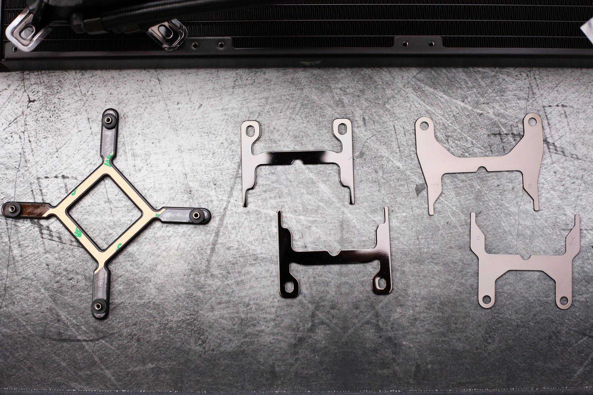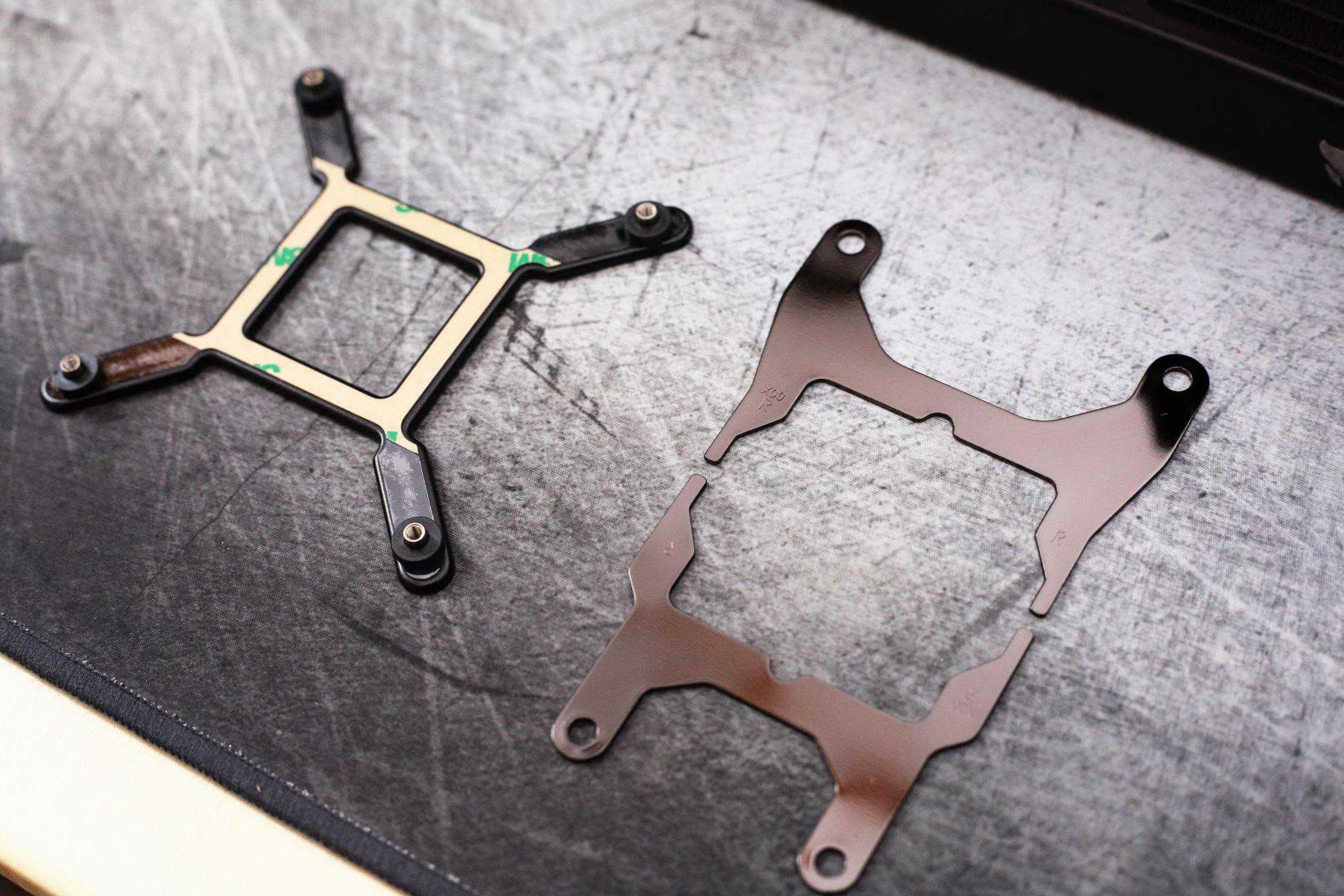 水冷安装第一步,装上H170i的扣具。调整好四个螺丝孔位对准到主板上。