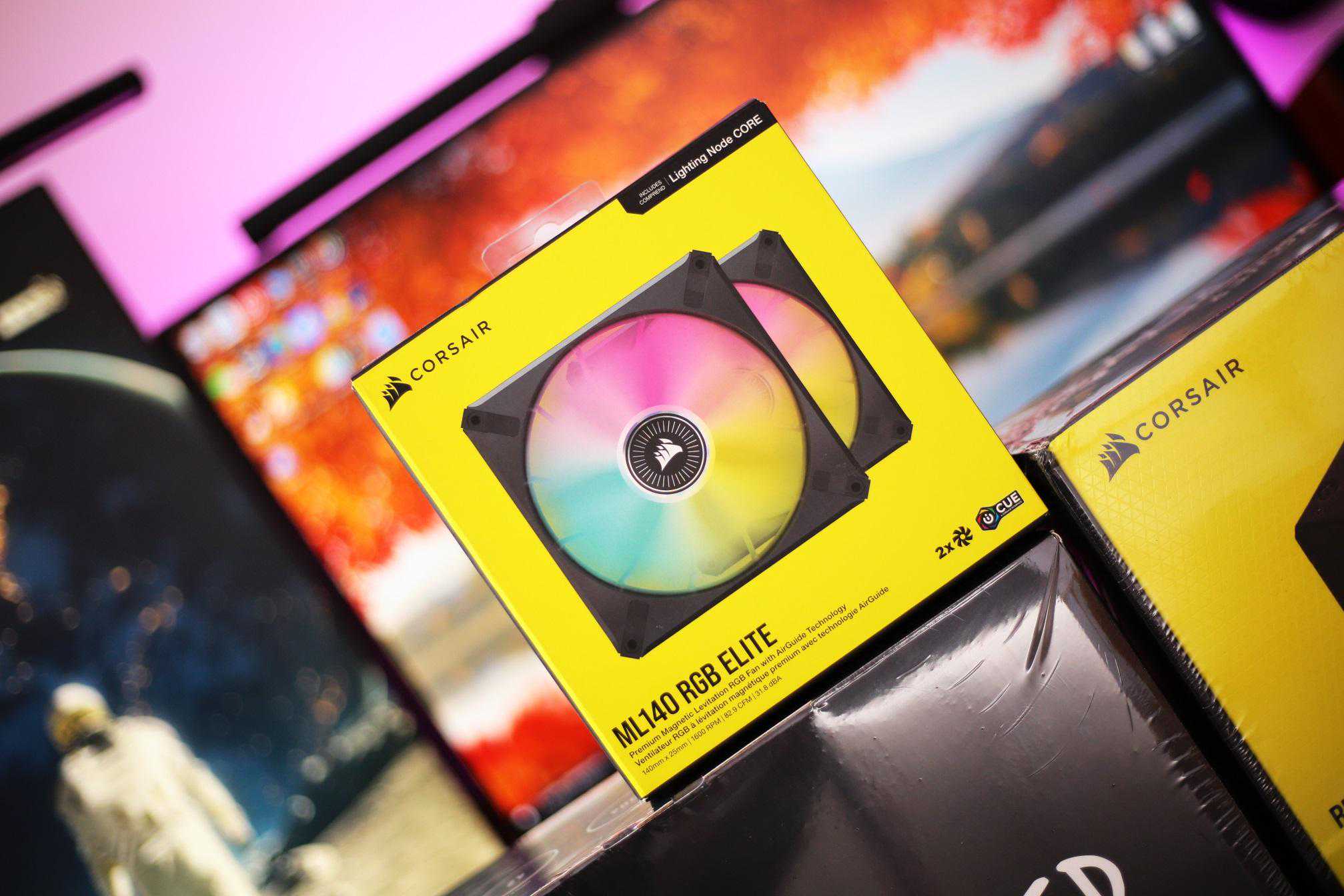 这款ML140RGBELITE精英版散热风扇可以看做是上面H170iELITELCD精英版所带风扇的Plus版本,尺寸更大,风力更强劲,所采用的依旧是磁悬浮轴承并可以通过iCUE驱动调节风扇的转速以及灯光设定。