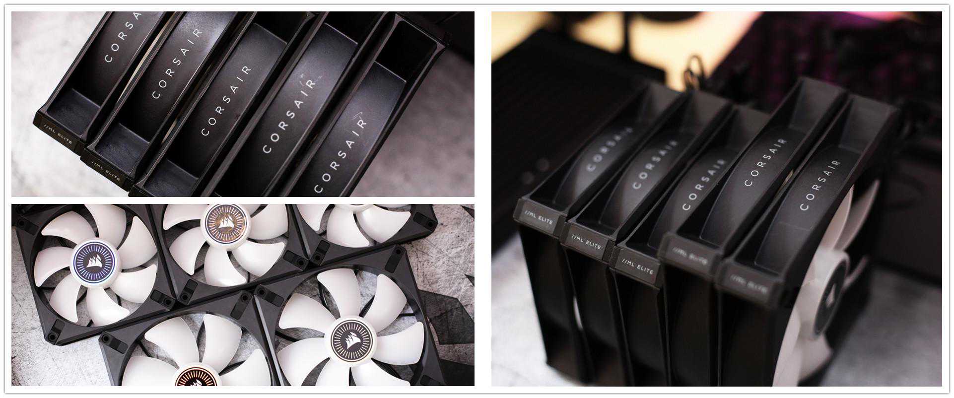标配3把ML120RGBELITE风扇,该风扇采用磁悬浮轴承,能不能让气流更加集中不太确定,但比较静音还是能感受到的。