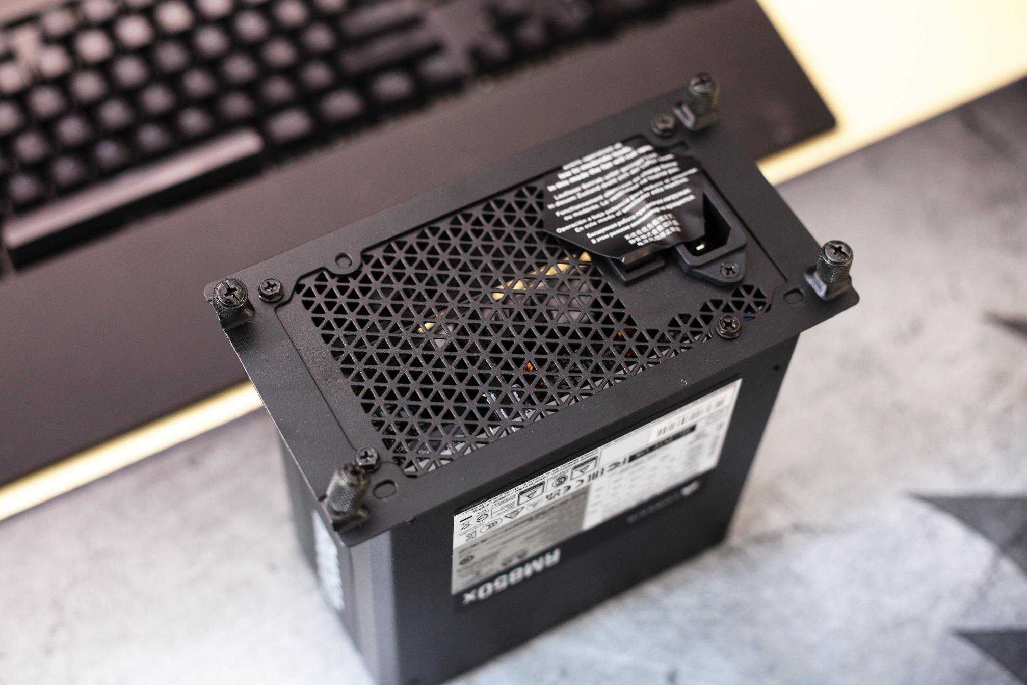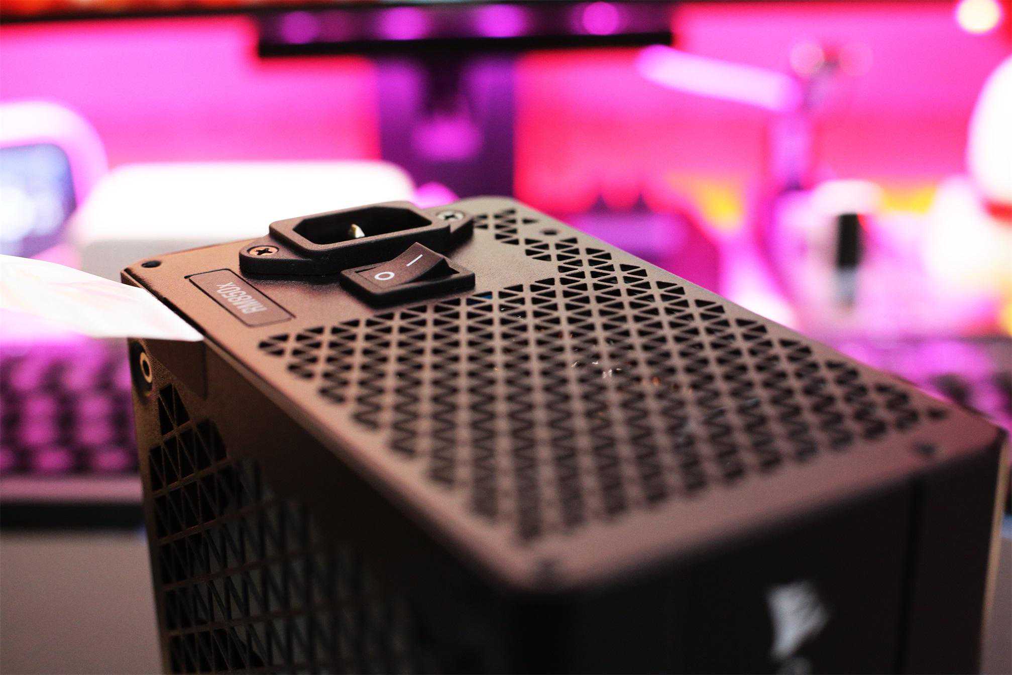 电源接口AC端依旧采用大面积三角镂空散热孔方便热量排出,并设计有独立开关,在插拔插头时对内部硬件起到保护作用。