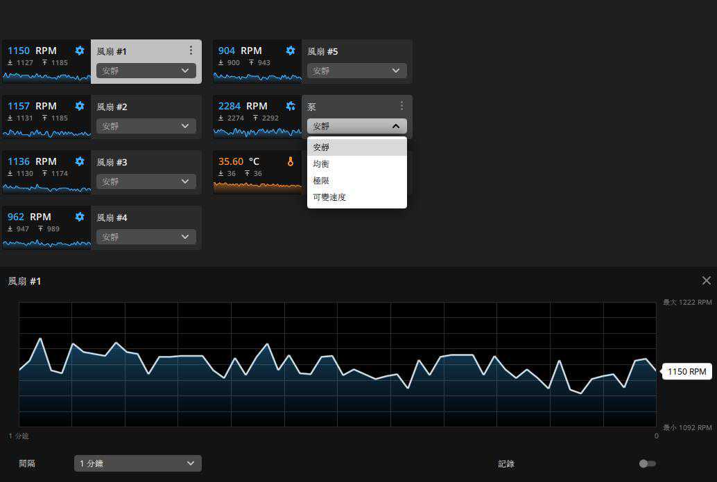 设置每个风扇的模式,你甚至可以将风扇设置为零RPM,这样情况下风扇真的就不转了。