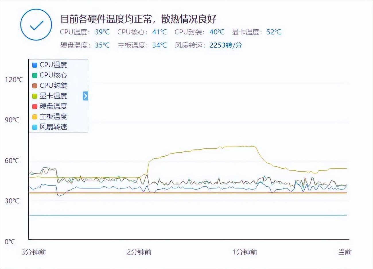测试方面我主要跑了一遍鲁大师的性能测试,这里CPU温度有少许上升但是并没有超过60度,而且当测试完毕之后CPU温度就立马降下来,可以见得水冷的散热效率。