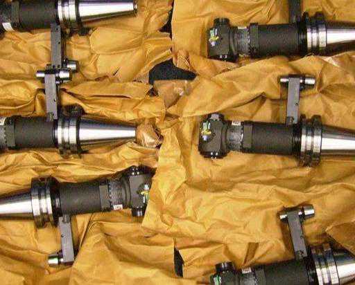 从角度头与主轴的连接可以看出,当主轴定位后(如M19),通常角度头的朝向只有一个,所以在加工几个方向时需要几个角度头(如上图5个角度头)。但是即使是一个方向,可以用多种刀具。