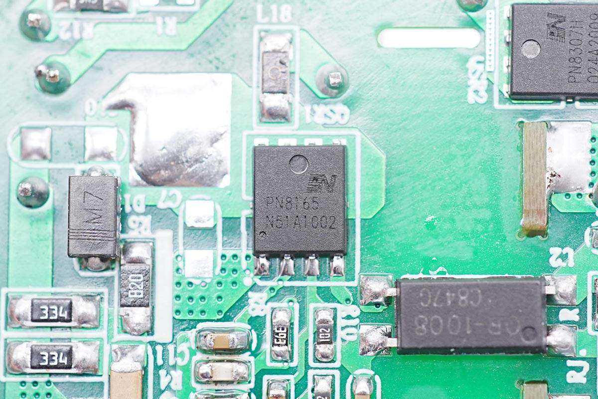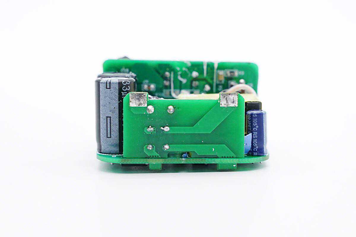 品创达这款充电器采用反激开关电源设计,固定电压输出,输出电压通过两路独立的降压芯片,内置协议功能,根据负载需求,调节输出电压,下面我们就从输入端开始了解各个元器件的信息。