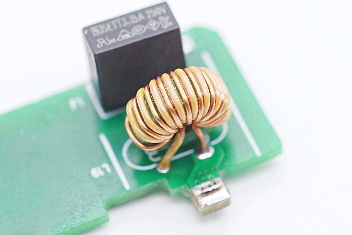 小板上焊接延时保险丝和共模电感。