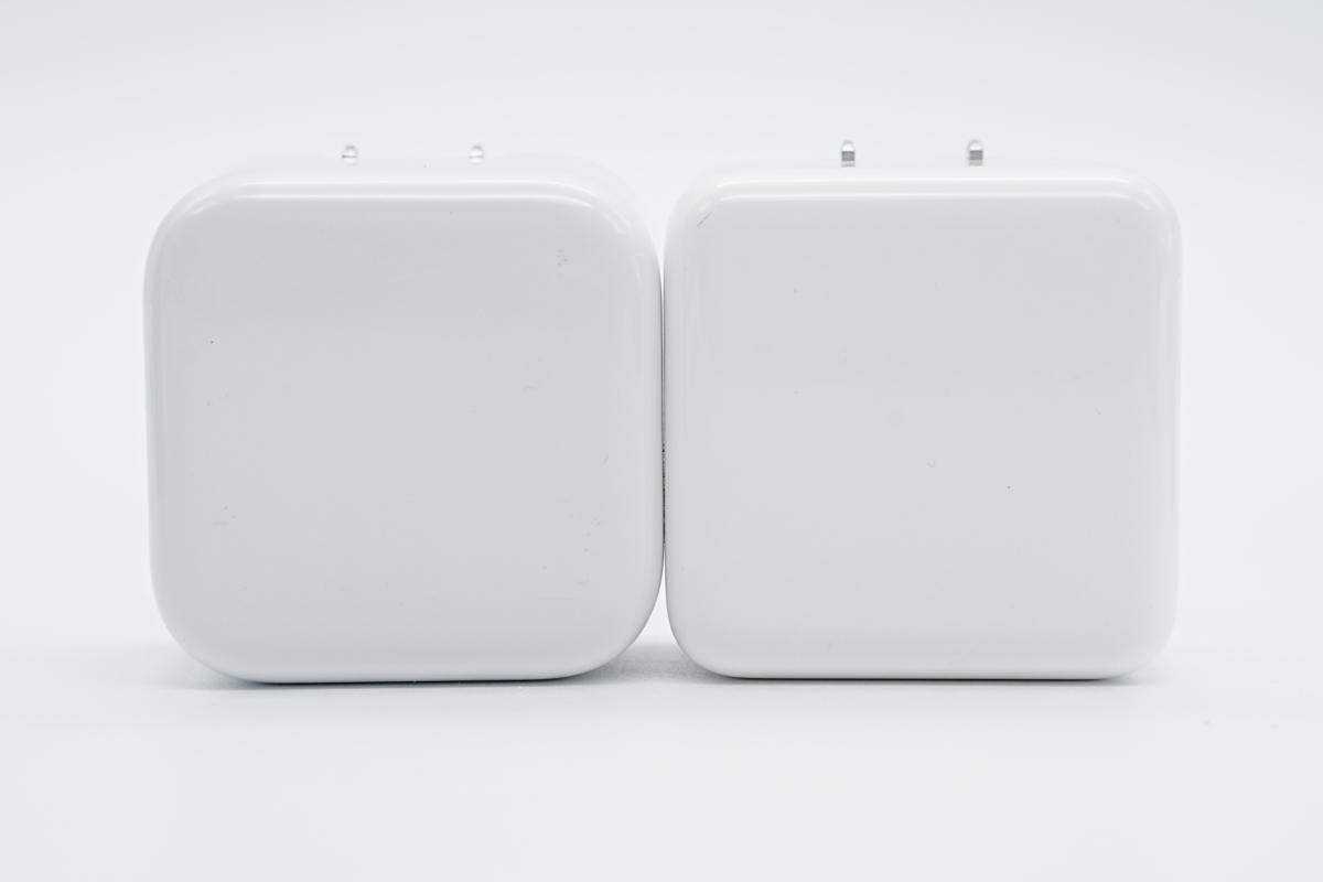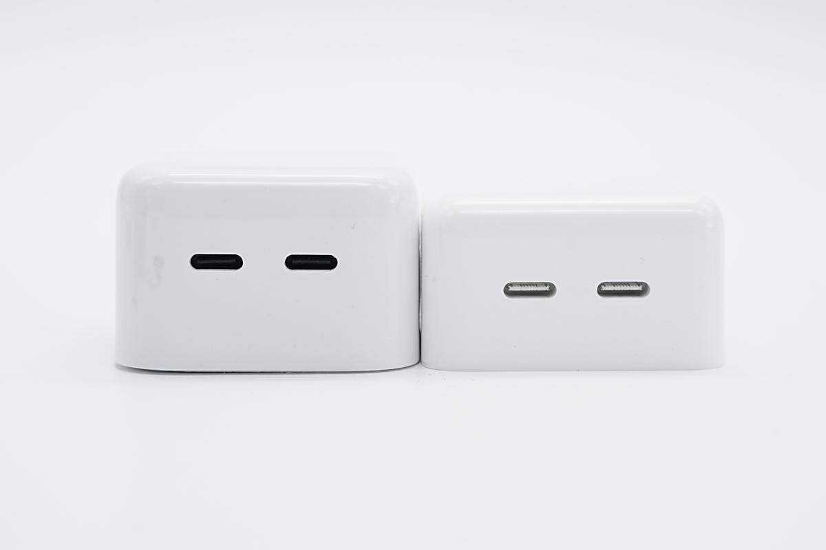 和苹果新款35W充电器A2579对比,两者正面大小相当。