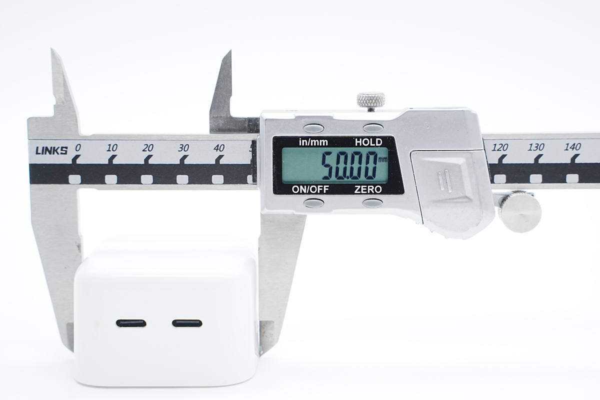 测得充电器机身长度约为50mm。