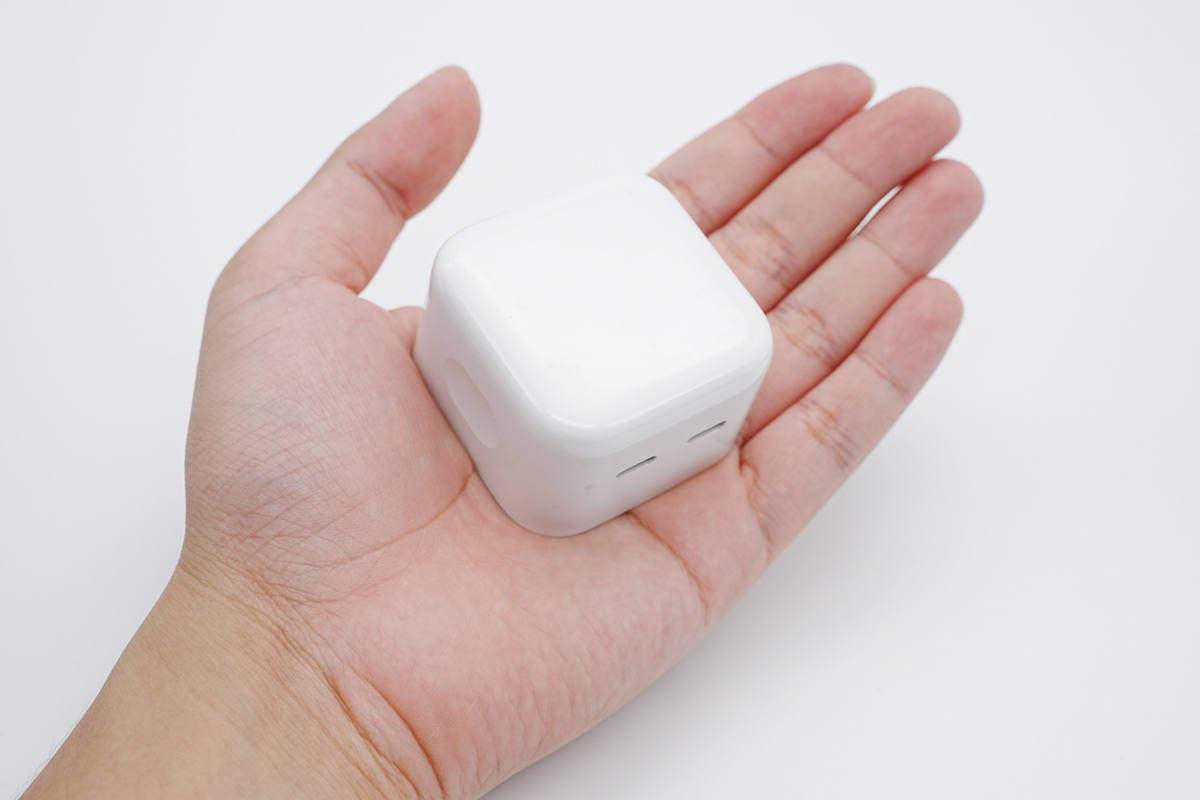 品创达35W充电器采用和苹果A2579相同的“果冻”造型设计,PC阻燃材质白色外壳,表面高光亮面处理,边角过渡圆润。此外机身两侧细心的设计了两个小凹面,方便用户插拔使用。