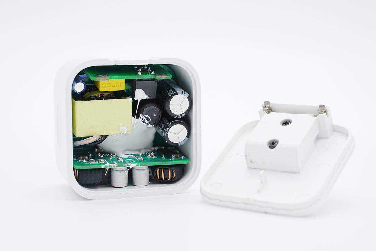 取出充电器内部PCBA模块,壳体内部粘贴导热垫散热。