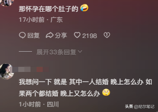 看到这里,有不少网友对他们的感情生活表示“关心”:其中一个结婚了,如果她们怀孕了,孩子生出来谁管?